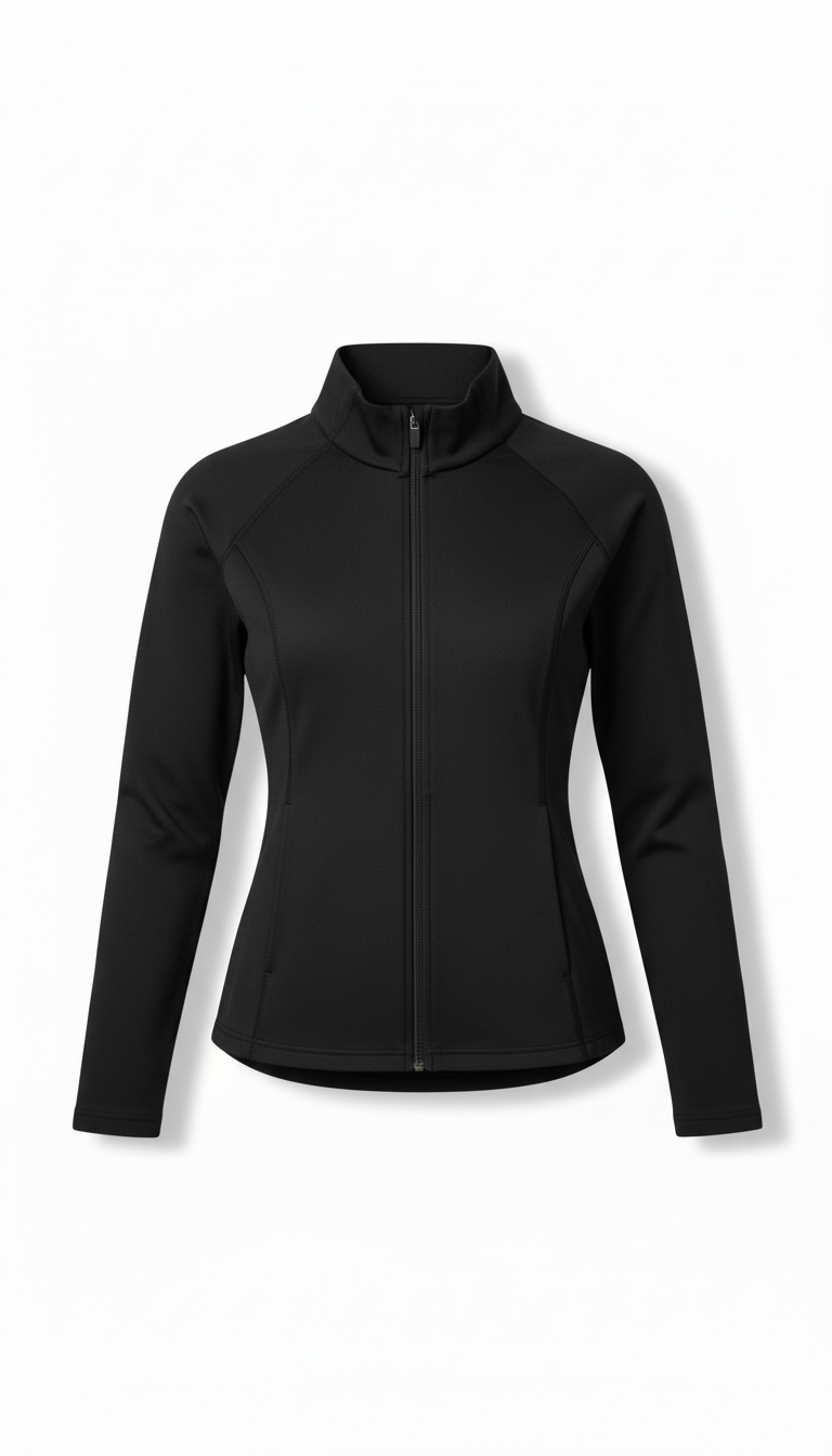 Designed for performance with a refined silhouette, the Full-Zip Workout Jacket is a sleek essential made to support movement while elevating your activewear wardrobe. Crafted in a timeless black tone, it features subtle contour paneling that enhances the body’s natural shape for a flattering, streamlined fit.